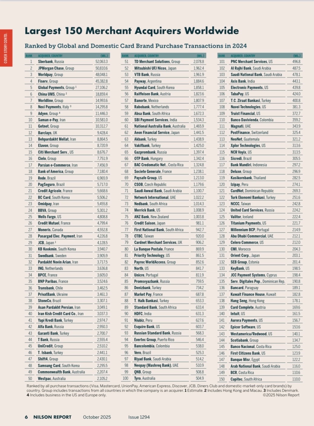 ПриватБанк піднявся на 3 позиції та посідає 37-ме місце у рейтингу 150 найбільших еквайєрів Європи, згідно з оновленими даними міжнародного аналітичного видання Nilson Report. ПриватБанк став єдиним українським банком, що увійшов до ТОП-150 рейтингу провідних світових банків та фінансових компаній-еквайрів.