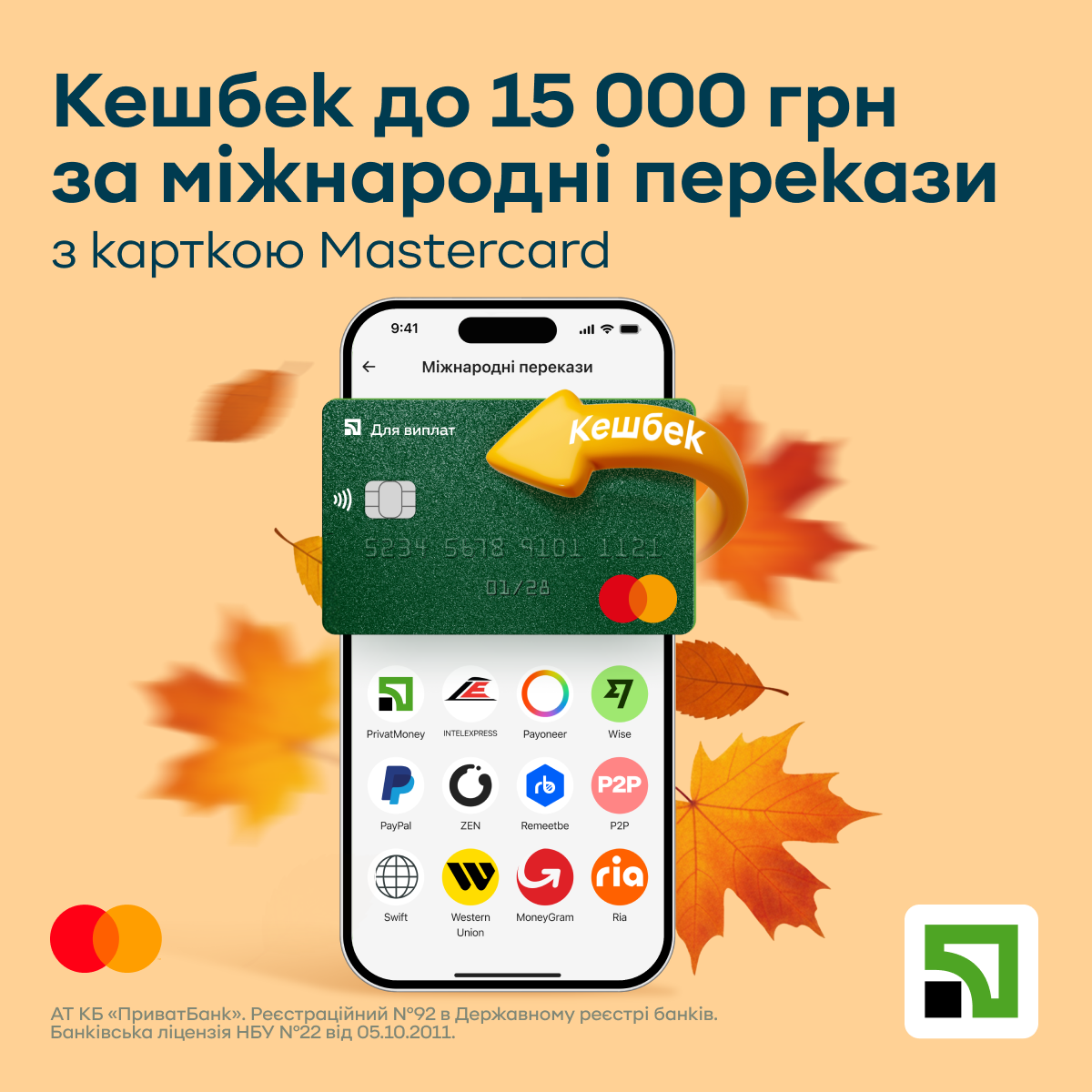 Клієнти ПриватБанку зможуть отримати щомісячний кешбек до 15 000 грн за отримання чи відправку міжнародних переказів на картку Mastercard.