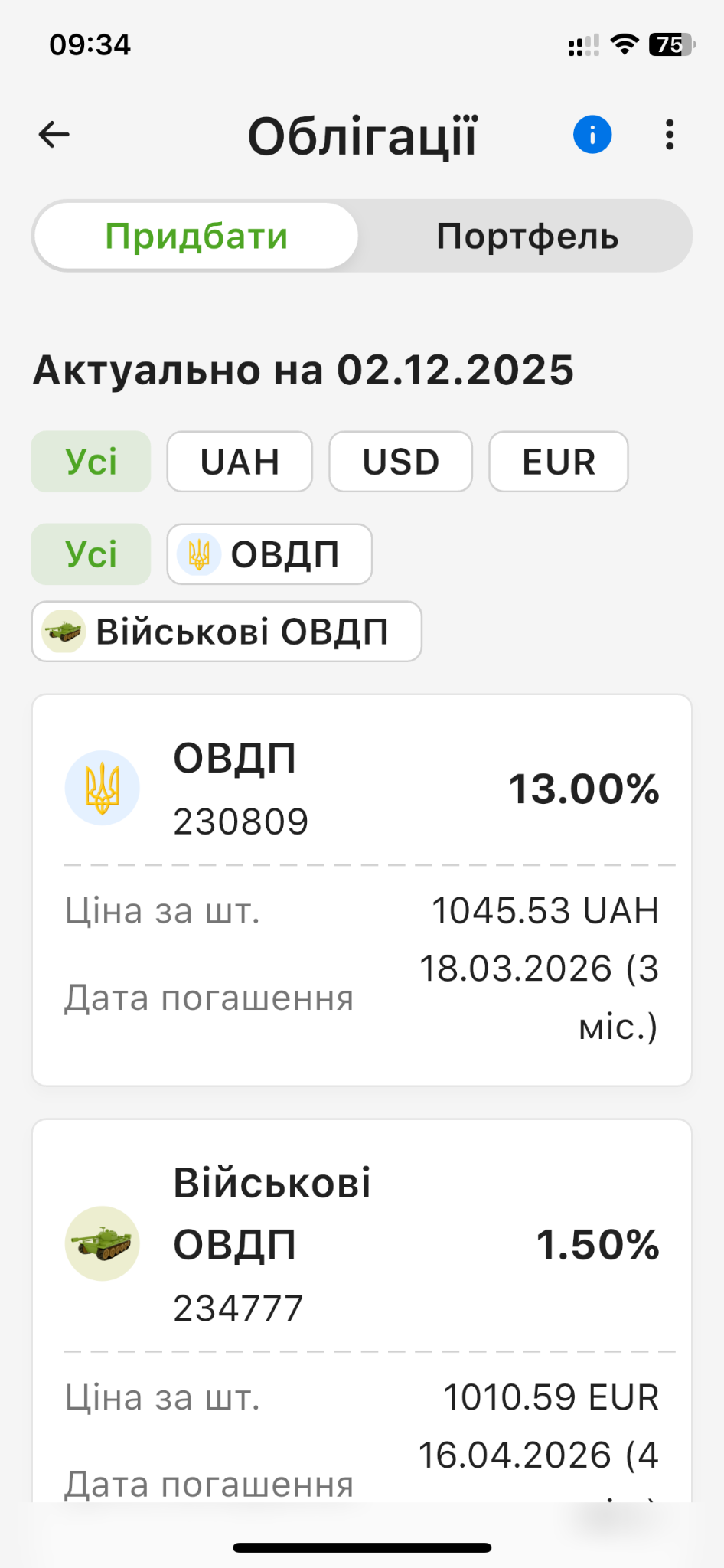У листопаді ПриватБанк відкрив українцям ще один простий шлях до інвестицій - тепер шлях до державних облігацій внутрішньої позики (ОВДП) починається зі смартфона. У мобільному застосунку Приват24 з’явився новий інвестиційний розділ “Облігації”, де клієнти можуть управляти своїми цінними паперами, ініціювати купівлю та продаж ОВДП.