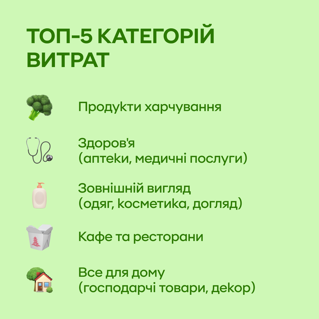 Частка витрат з карток на покупку ліків та товарів для здоровʼя у 2025 в споживчому кошику українця становила 8,4%. Трохи менше - 7,6% від загального обсягу українці витрачали на одяг та взуття, косметику і салони краси 7,2%.