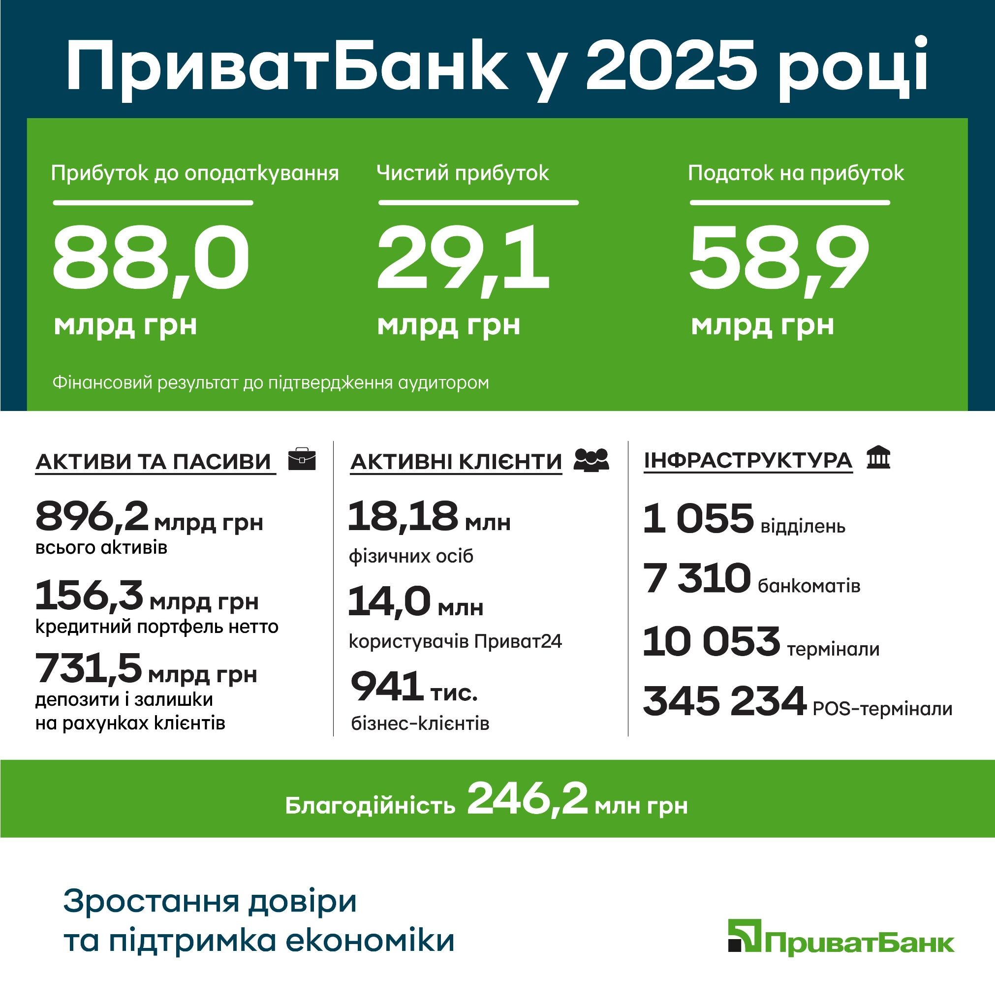 Зі стійким балансом, рекордною довірою клієнтів і системним соціальним впливом ПриватБанк упевнено входить у 2026 рік, готовий до нових результатів та до подальшого зміцнення економічної та соціальної стійкості України.